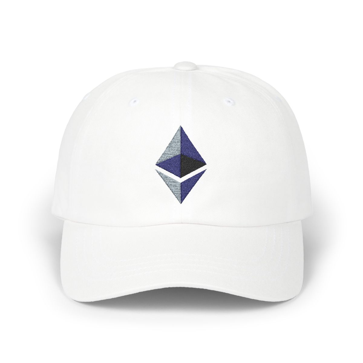 If you’re stoked about this Ethereum Logo Embroidered Dad Cap, you’re part of the blockchain revolution, just like us at Chosen and Loved! Ethereum (ETH) is the world’s leading smart contract platform, powering decentralized finance (DeFi), NFTs, and Web3 with unparalleled innovation. This hat lets you rep Ethereum’s vibrant community and unstoppable ecosystem with laid-back style, perfect for Father’s Day or everyday wear.Crafted for comfort and durability, this 6-panel dad cap features a bold Ethereum logo, precision-embroidered to resist fading and fraying, ensuring your ETH pride lasts. Made from 100% cotton (green camo option: 65% polyester, 35% cotton), it offers a breathable, relaxed fit with a pre-curved visor and adjustable snap closure, ideal for men and women. Whether you’re a crypto dad, DeFi trader, or ETH HODLer, this unisex cap fits any vibe.Gift it for Father’s Day or bundle it with our crypto-themed mugs or t-shirts for the ultimate ETH-inspired package. At Chosen and Loved, we blend faith and innovation—pay securely with MetaMask for a crypto-friendly checkout, or use traditional options. Join the Ethereum movement and rock this cap today!Product Features:
